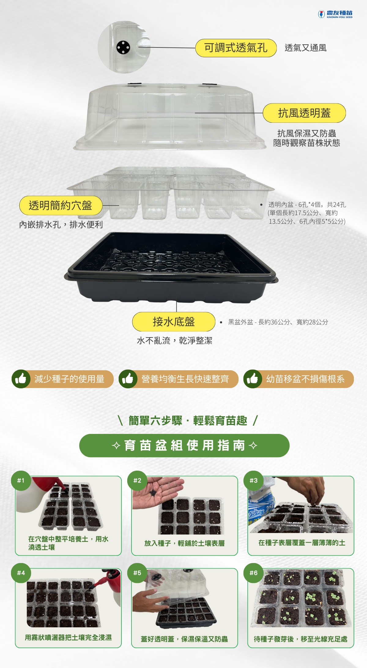 • 簡單育苗不占空間、方便省時。