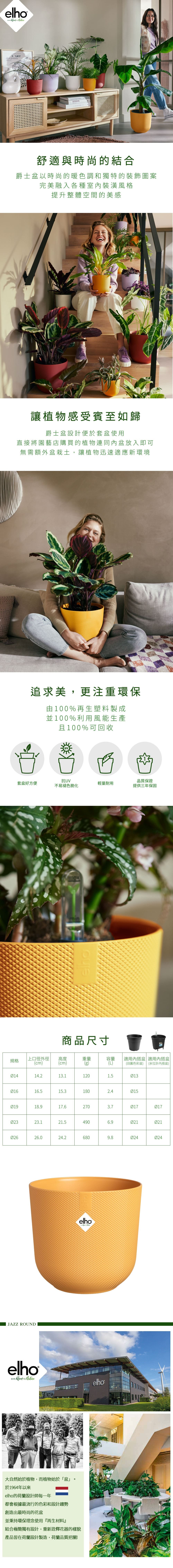 爵士盆由100%回收材料製成,並利用風能生產,充分展現對環境的愛護。